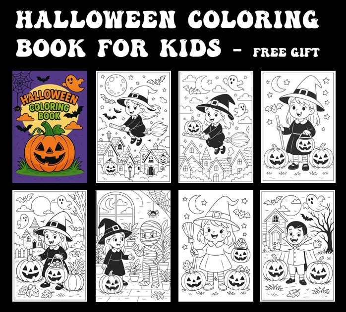 Celebrate the magic of Halloween with this exclusive 25-page Halloween Coloring Book for Kids, designed to spark creativity and fun. Each page features a unique, high-quality illustration that’s perfect for young artists, from friendly witches and smiling pumpkins to playful ghosts, bats, and haunted houses.